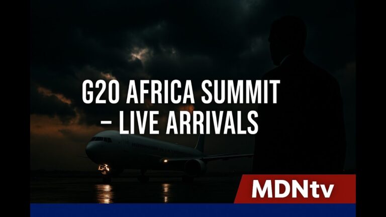 MDNtv brings you live arrival coverage from the G20 Africa Summit, where world leaders, delegates and senior officials descend on Johannesburg for a pivotal gathering focused on development, security and Africaโs global role.